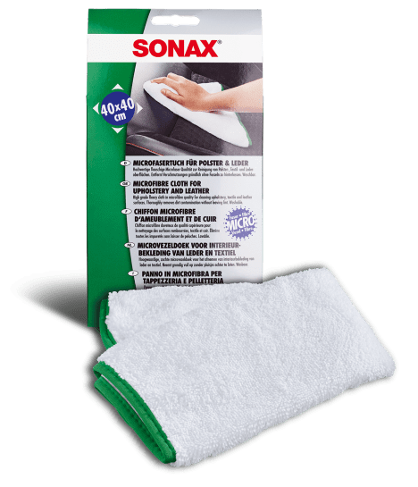 SONAX Microfiber cloth for upholstery + leather. Mikrošķiedra apšuvumiem un ādai. Kvalitatīva, pūkaina mikrošķiedras kvalitāte polsterējuma, tekstila un ādas virsmu tīrīšanai. Rūpīgi notīra netīrumus, neatstājot nevienu pūku. Ideāls papildinājums SONAX tīrīšanas līdzekļiem interjeram, polsterējumam un ādas virsmām: rūpīgi absorbē atlikušos netīrumus un nodrošina nevainojamu tīrību. Mazgājams. 1 gb.