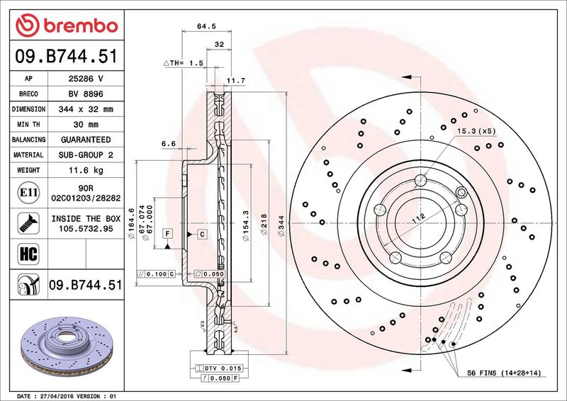 Bremžu diska biezums [mm]
