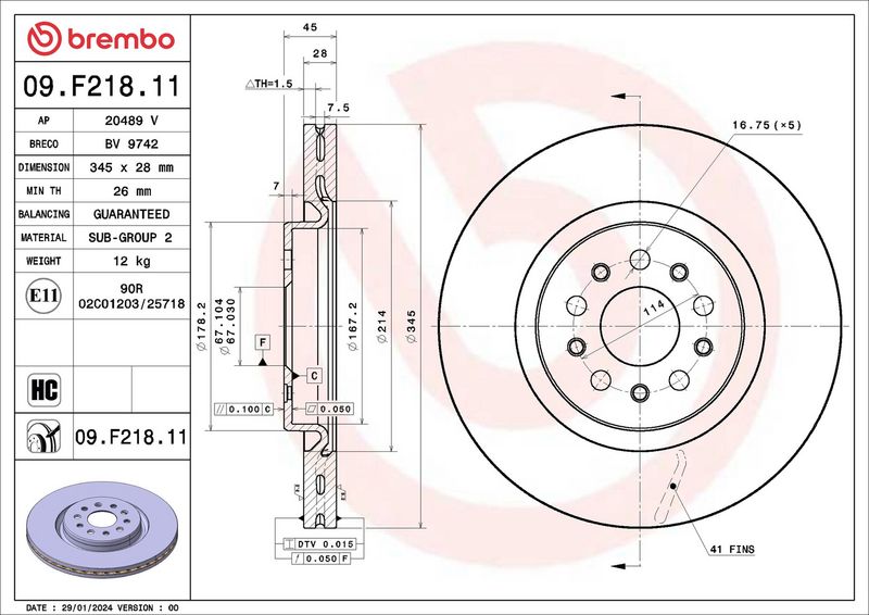 Bremžu diska biezums [mm]
